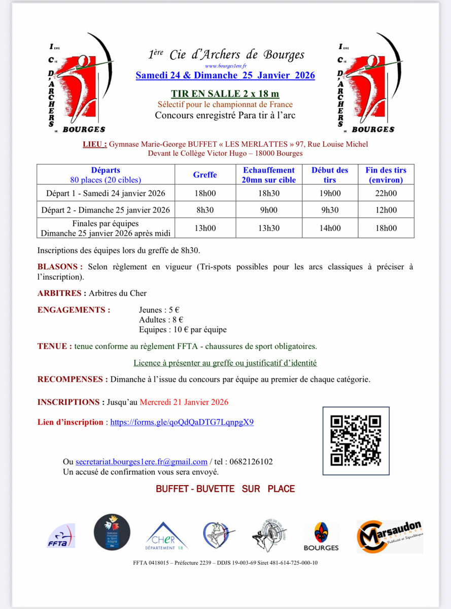 venez participer à nos concours QUALIFICATIFS championnat de France, deux départ le samedi soir et le dimanche matin avec possibilité de tirer en équipe le dimanche après midi