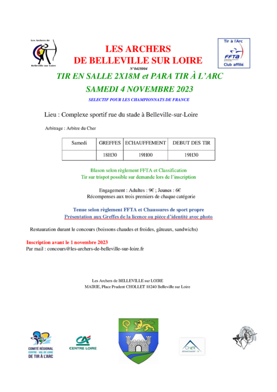 Concours salle 2x18m BELLEVILLE SUR LOIRE