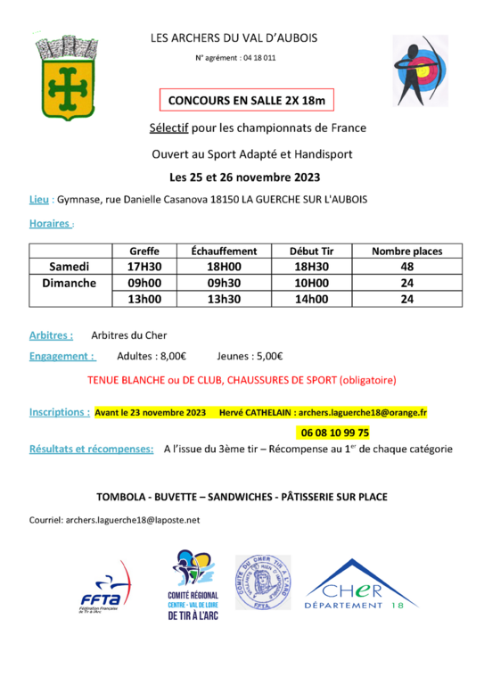 Concours salle 2x18m LA GUERCHE SUR L'AUBOIS