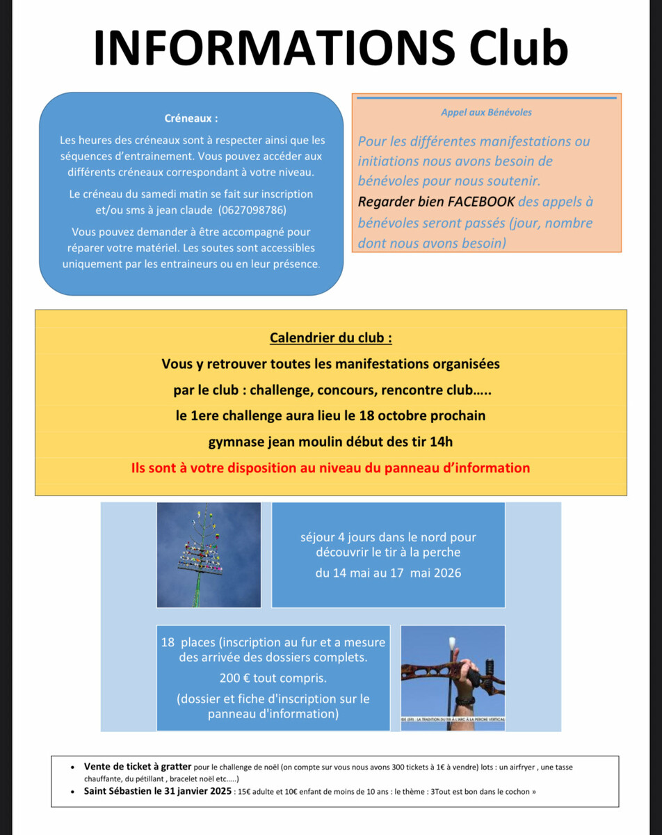 vendredi soir c'est tenu la reunion de rentrée du club....un moment de présentation aux nouveaux membres de l'organisation du club, d'informations sur le calendrier ainsi que des differents projets dont celui de séjour à la découverte du tir à la perche du 14 au 17 mai